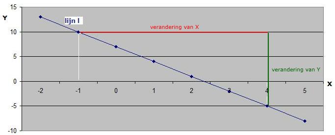 De helling is dus -15 : 5 = -3.